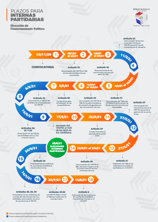 FECHAS IMPORTANTES DE RENDICIÓN DE CUENTAS SEGÚN LO DISPUESTO EN LA LEY N° 6501/2020 QUE MODIFICA VARIOS ARTÍCULOS DE LA LEY N° 834/1996 "QUE ESTABLECE EL CÓDIGO ELECTORAL PARAGUAYO" MODIFICADO POR LA LEY N° 4743/2012 Y LA 6167/2018 "QUE REGULA EL FINANCIAMIENTO POLÍTICO".